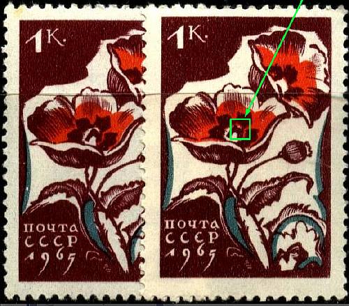 СССР 1965 год. Мак (3102). Разновидность - белая точка на левом цветке (Ю)