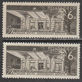 СССР 1965 год. Метрополитен. Ленинград. Станция "Московские ворота". Разновидность - разная бумага, 2 марки