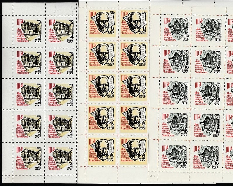 СССР 1966 год. III Международный конкурс имени П.И. Чайковского в Москве, 3 листа СССР 1966 год. III Международный конкурс имени П.И. Чайковского в Москве, 3 листа СССР 1966 год. III Международный конкурс имени П.И. Чайковского в Москве, 3 листа