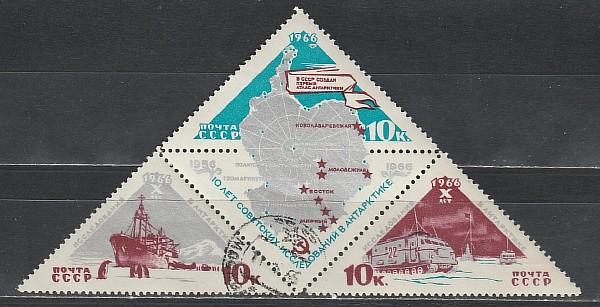 СССР 1966 год, Исследования Антарктиды, 3 гашёные марки. сцепка