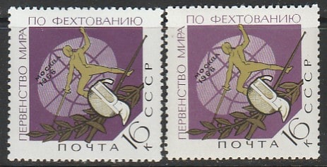 СССР 1966 год. Первенство мира по фехтованию. Разновидность - разный оттенок, 2 марки.