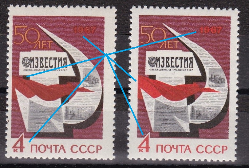 Разный красный цвет: флага, номинала и слова Почта СССР