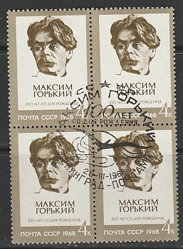 СССР 1968 год. 100 лет со дня рождения Максима Горького, квартблок, спецгашение (3524)
