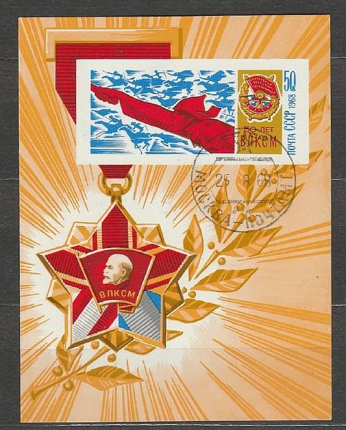 СССР 1968 год, 50 лет ВЛКСМ, гашеный блок