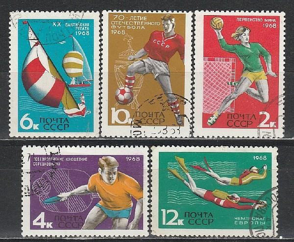 СССР 1968 год, Спортивные Игры, 5 гашёных марок.