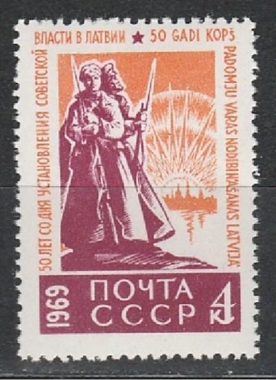 СССР 1969 г, 50 лет Советской Власти в Латвии, 1 марка