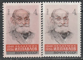 СССР 1969 год. 120 лет со дня рождения физиолога, академика И.П. Павлова, разновидность по цвету