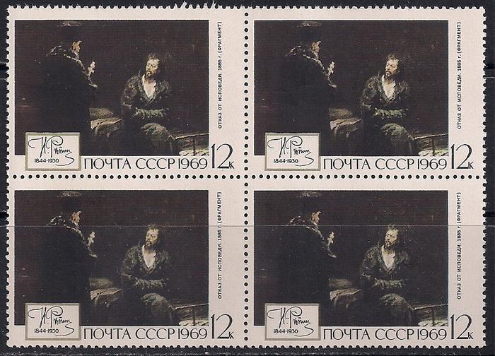СССР 1969 год. Картина И.Е.Репина "Отказ от исповеди". 1 квартблок