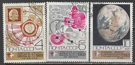 СССР 1969 год. Освоение космоса, 3 гашёные марки