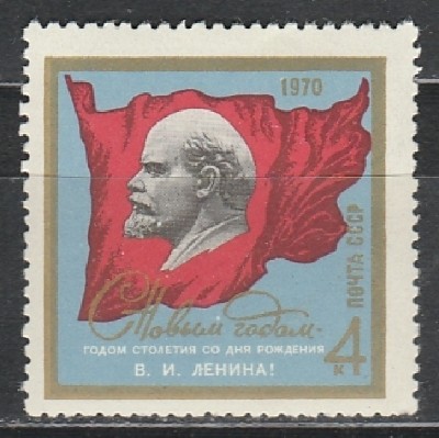 СССР 1969 год, С Новым 1970 Годом !, 1 марка. В. И. Ленин