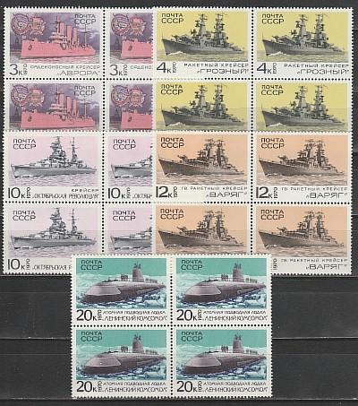 СССР 1970 г, Боевые Корабли, 5 квартблоков (К