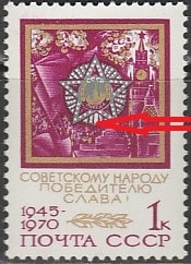 СССР 1970 год. Орден Победы, 1 марка. Разновидность - большой бриллиант