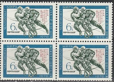 СССР 1970, Победа Сов.Хоккеистов, Надпечатка, квартблок