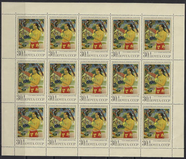 СССР 1970 год. Зарубежная живопись. Картина П. Гогена "Женщина, держащая плод" (номинал 30к). Лист