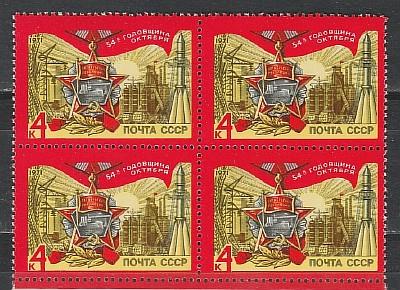 СССР 1971 год, 54-я годовщина Великой Октябрьской социалистической революции, квартблок. космос