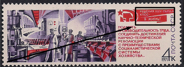 СССР 1971 год. Цех машиностроительного завода (ном. 4к). Разновидность - двойной красный текст