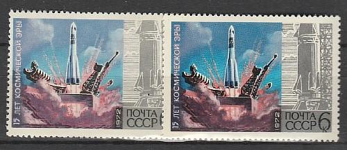 СССР 1972, Старт Ракеты, Разный Оттенок, 2 марки