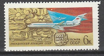 СССР 1973 год, 50 лет Гражданской Авиации СССР, 1 марка