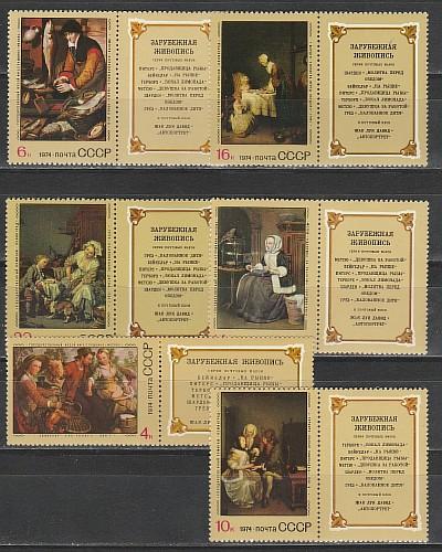 СССР 1974 г, Зарубежная Живопись, 6 марок с прямоугольными купонами