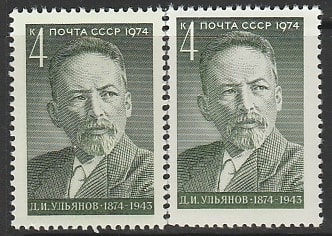 СССР 1974 год. 100 лет со дня рождения государственного деятеля Д.И. Ульянова. Разновидность - разный оттенок, 2 марки (4313)