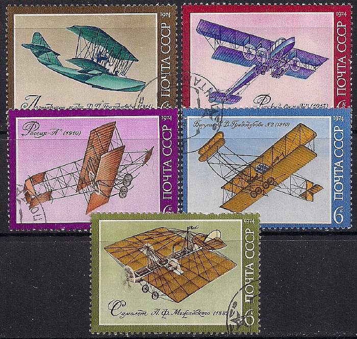 СССР 1974 год. Самолёты. 5 гашёных марок