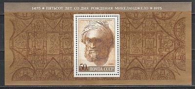 СССР 1975 г, 500 лет Микельанджело, блок
