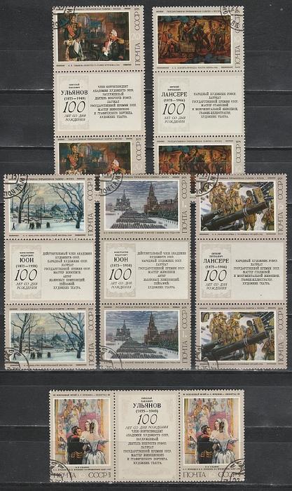 СССР 1975 год, Советская Живопись, 6 сцепок с купоном посередине, гашеные