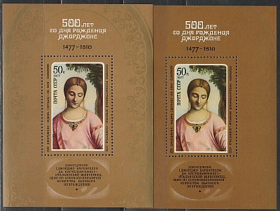 СССР 1977, Джорджоне, Разный Цвет, 2 блока