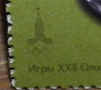 СССР 1977 год. 22-е летние Олимпийские игры в Москве. Конный спорт (ном.16+6к). Разновидность - сдвиг эмблемы Олимпиады