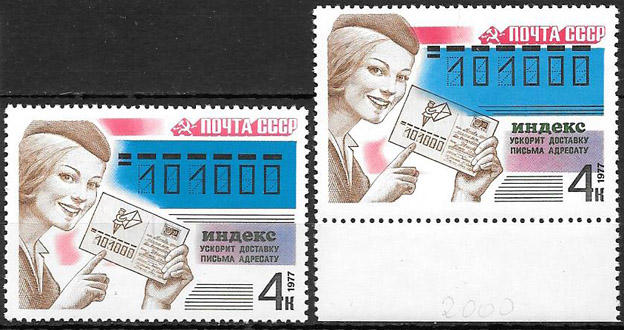 СССР 1977 год. Почта СССР. Разновидность - сдвиг черного цвета