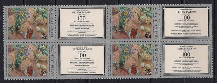 СССР 1978 год. 100 лет со дня рождения К.С.Петрова-Водкина. Картина "Утренний натюрморт". 1 квартблок с купонами