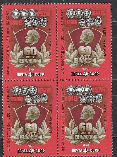 СССР 1978 год, Филвыставка "60 лет ВЛКСМ", Надпечатка, квартблок