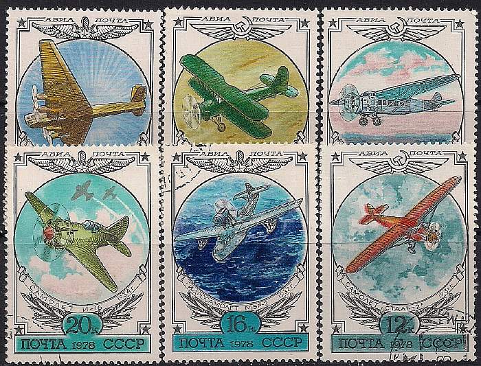 СССР 1978 год. История отечественного авиастроения. 6 гашеных марок