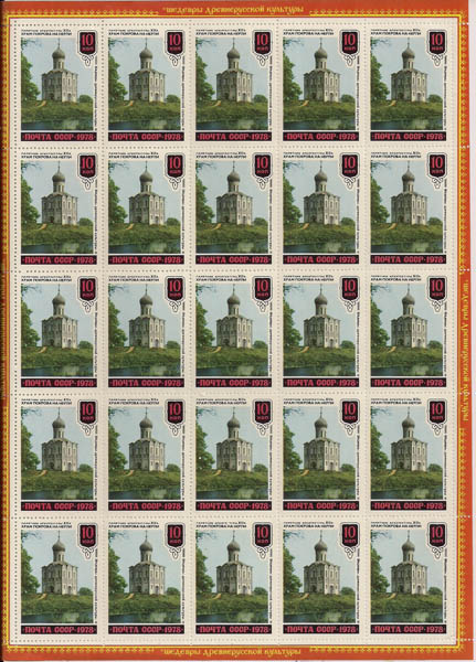 СССР 1978 год. Памятник архитектуры 12 в. Храм Покрова на Нерли (номинал 10к.). 1 лист