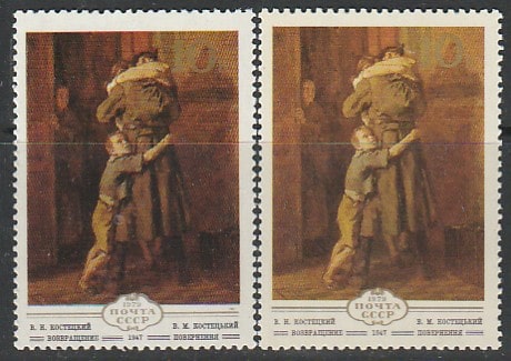 СССР 1979 год. Картина В.Н. Костецкого "Возвращение". Разновидность - разный цвет, 2 марки.