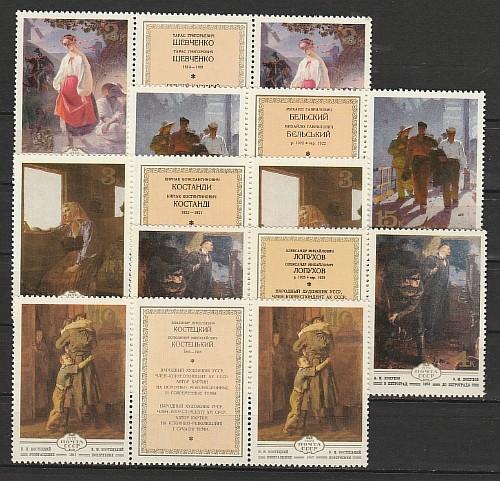 СССР 1979 г, Украинская Живопись, 5 сцепок с купоном посредине
