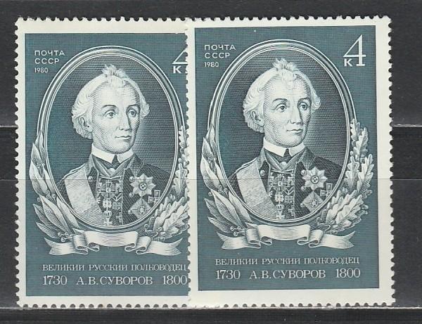 СССР 1980 г, А. Суворов, Разная Бумага, 2 марки. (