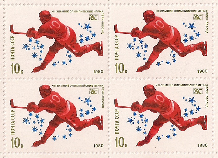 СССР 1980 год. 13-е Зимние Олимпийские Игры в Лейк-Плесиде. Хоккей. (номинал 10к.).1 квартблок