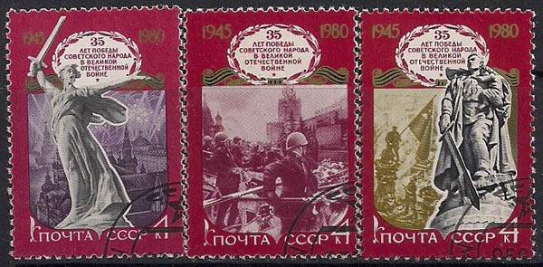 СССР 1980 год. 35 лет Победе в Великой Отечественной войне. 3 гашёные марки
