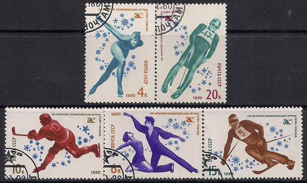 СССР 1980 год. Зимние Олимпийские Игры в Лейк-Плэсиде. 5 гашёных марок