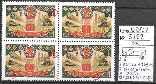 СССР 1981 год. 60 лет Коми. Разновидность - круги на трех марках в квартблоке