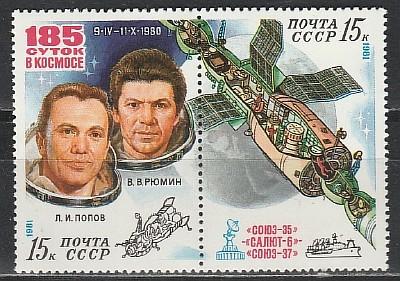 СССР 1981 год , "Союз -35" - "Салют-6" - "Союз-37", пара марок. 185 суток в космосе.