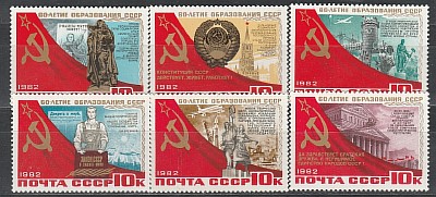 СССР 1982 г, 60 лет СССР, серия 6 марок КОСМОС