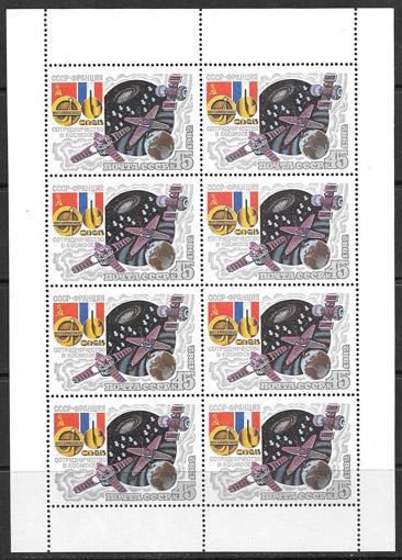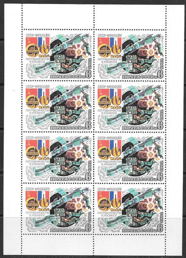 СССР 1982 г. СССР - Франция, Сотрудничество в космосе, 3 малых листаСССР 1982 г. СССР - Франция, Сотрудничество в космосе, 3 малых листаСССР 1982 г. СССР - Франция, Сотрудничество в космосе, 3 малых листаСССР 1982 г. СССР - Франция, Сотрудничество в космосе, 3 малых листаСССР 1982 г. СССР - Франция, Сотрудничество в космосе, 3 малых листа