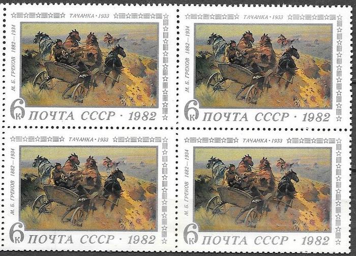 СССР 1982 год. 100 лет со дня рождения М.Б. Грекова, квартблок