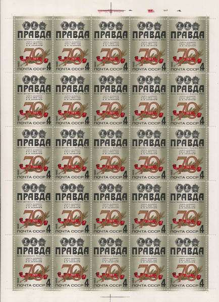СССР 1982 год. 70 лет газете "Правда". 1 лист