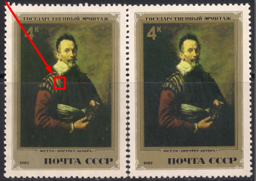 СССР 1982 год. Д. Фетти "Портрет актёра" (ном. 4к). Разновидность - красная "дыра" на плече