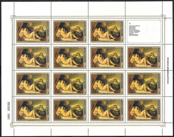 СССР 1982 г. Эрмитаж, искусство Италии, 5 малых листовСССР 1982 г. Эрмитаж, искусство Италии, 5 малых листовСССР 1982 г. Эрмитаж, искусство Италии, 5 малых листовСССР 1982 г. Эрмитаж, искусство Италии, 5 малых листов