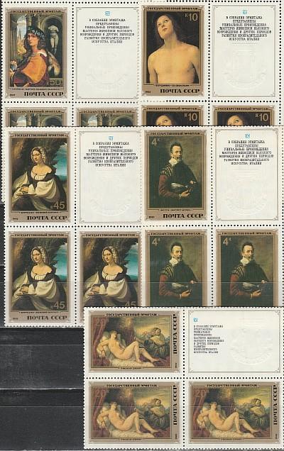 СССР 1982 год, Эрмитаж, Итальянская Живопись, 5 квартблоков с купонами.