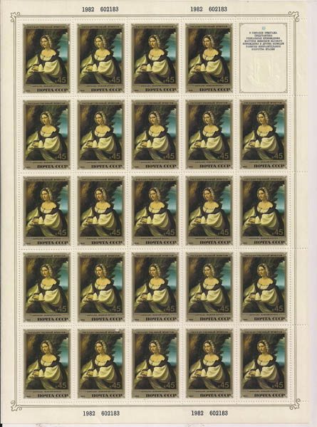 СССР 1982 год. Итальянская живопись. Корреджо "Женский портрет" (номинал 45к.). 1 лист с купоном